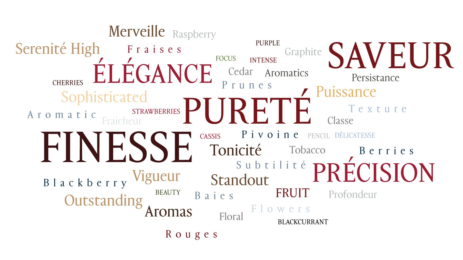 Precision, as revealed by a “precise attack”, a “precise bouquet”, a “precise wine”, “a very precise, sinewy, lithe palate” or the fact that “the palate is dense, focused and precise”.