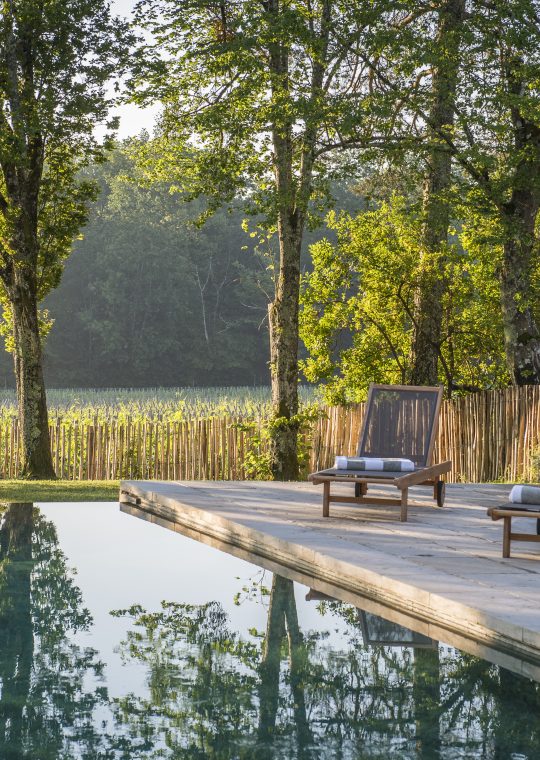 A refined escape. After several years of renovation, the Chartreuse Haut-Bailly (formerly known as Château Le Pape) has recovered all the finesse of its architecture and the charm of a subtle setting to establish itself in the vineyards like a delicate interlude, just a few steps from Bordeaux. Decorated in soft, luminous tones, the rooms offer a serene atmosphere. Enjoy breakfast on the terrace overlooking the vineyards, soak up the sun by the pool, read a book in the lounge or taste a Haut-Bailly vintage in the gardens… everything you need for an exceptional stay. La Chartreuse Haut-Bailly is a discreet retreat in the vineyards, a haven of peace dedicated to wine lovers who can enhance their stay by visiting the cellars or discovering the cuisine of the chef at our neighbouring property, Château Haut-Bailly.