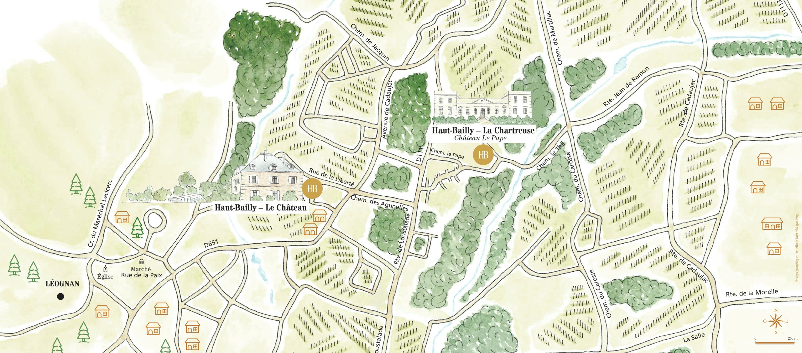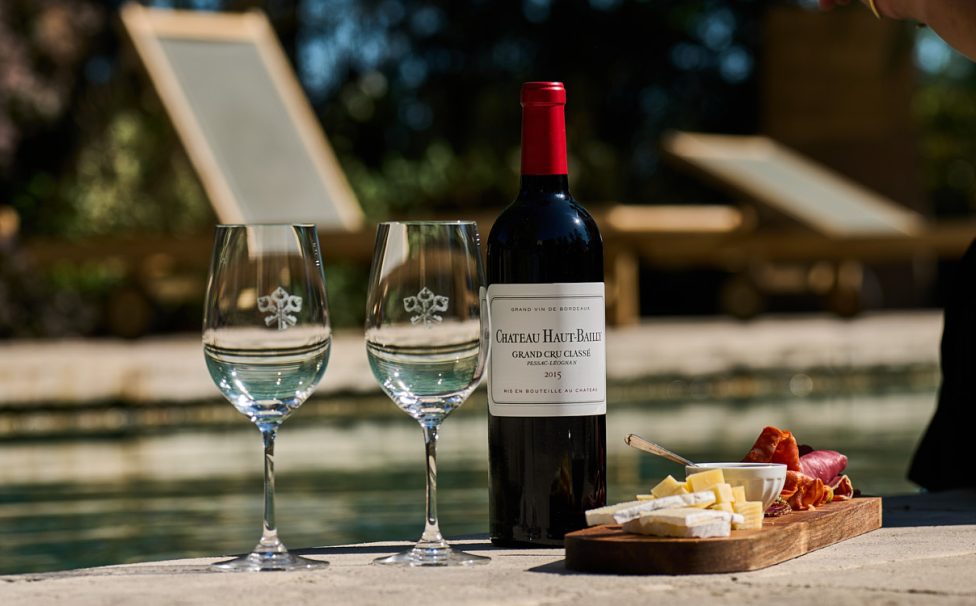 Enhance your experience with a bottle of Château Haut-Bailly or Haut-Bailly•II, paired with a selection of artisan cheeses and charcuterie.